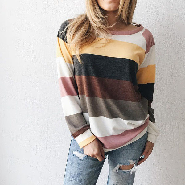 For a simple,casual and relaxed autumn look,you can have a try this sweatshirt! The striped element design makes this piece look so stylish and popular. Finished with long sleeve and round neck design,its soft and breathable fabric knows how to give you a comfortable day. A perfect addition for your casual wardrobe ensemble!