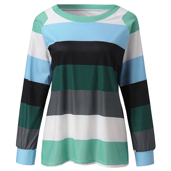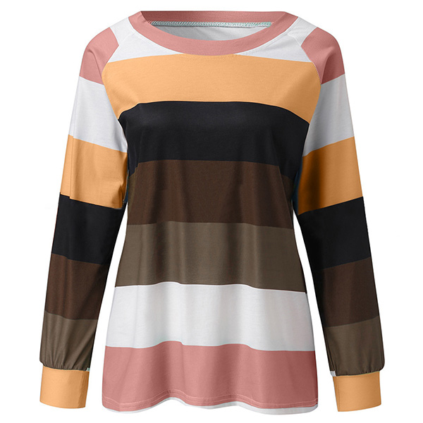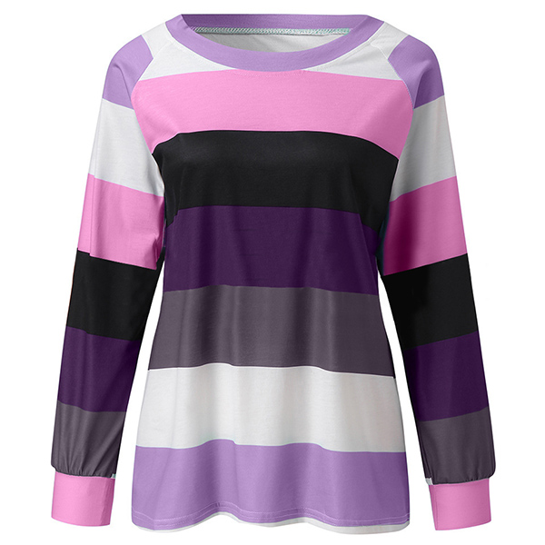 Casual Style Long Sleeve Round Neck Striped Sweatshirt