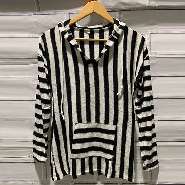 casual days. Striped style,designed with long sleeve,v-neck and front-pocket design,this piece