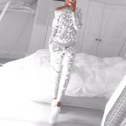 Enjoy your cozy and healthy life with this casual set. Including printed long sleeve tops and drawstring pants,