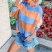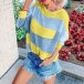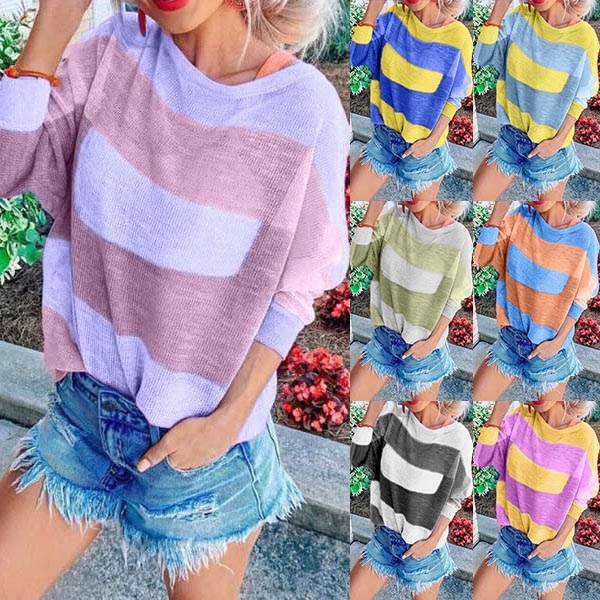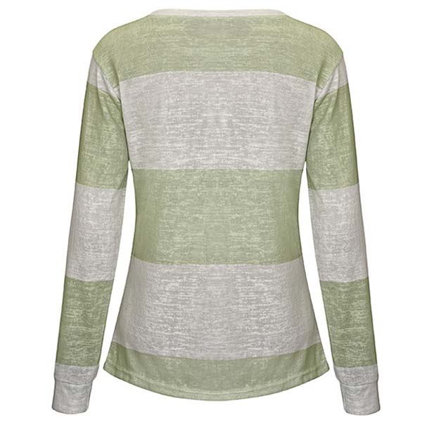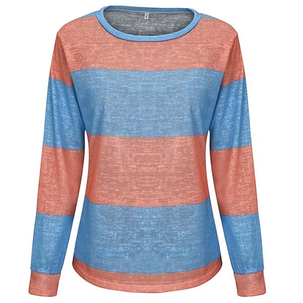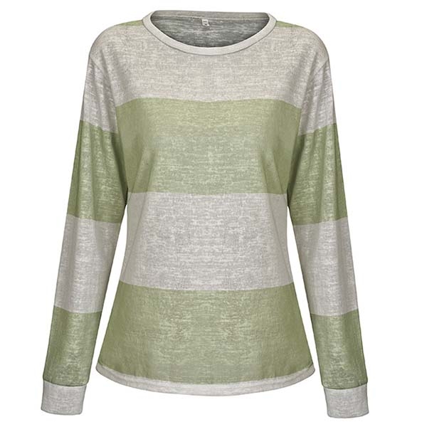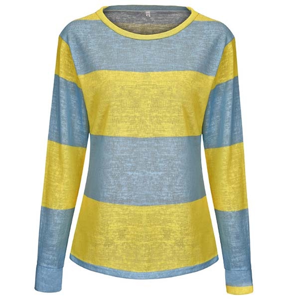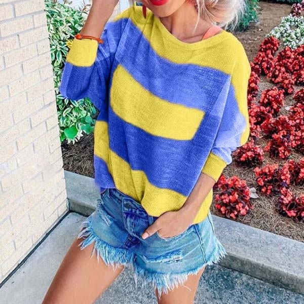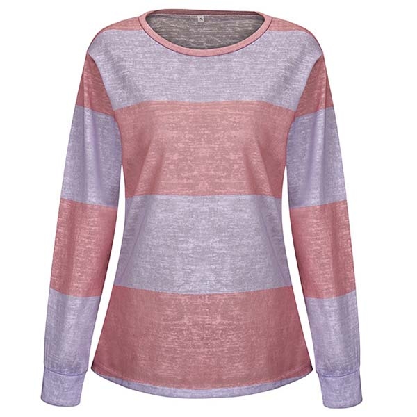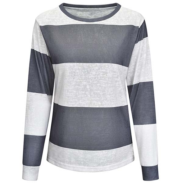 Tickle your stylish fancy with this stripe contrast color long sleeve top. Design in a loose-fit