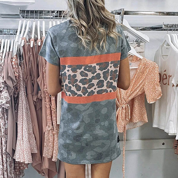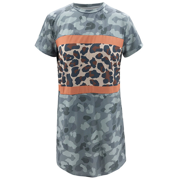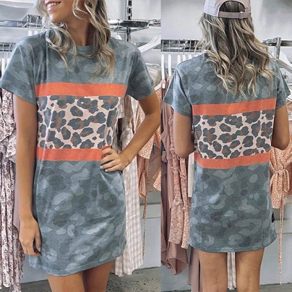 Casual Style Short Sleeve Round Neck Camouflage Printed T-shirt Dress