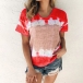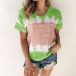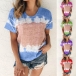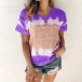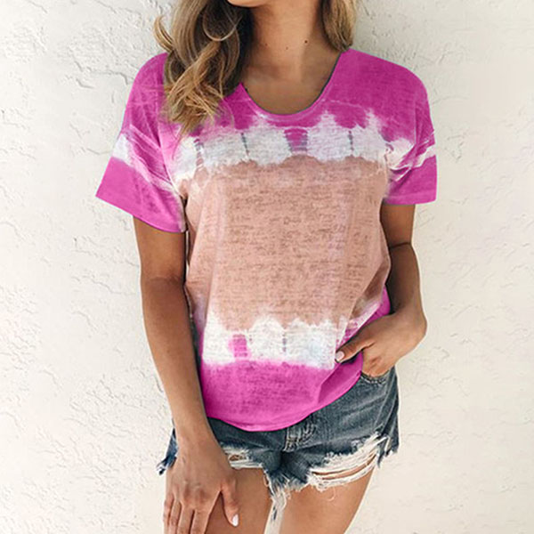Casual Style Short Sleeve Round Neck Contrast Color T-shirt