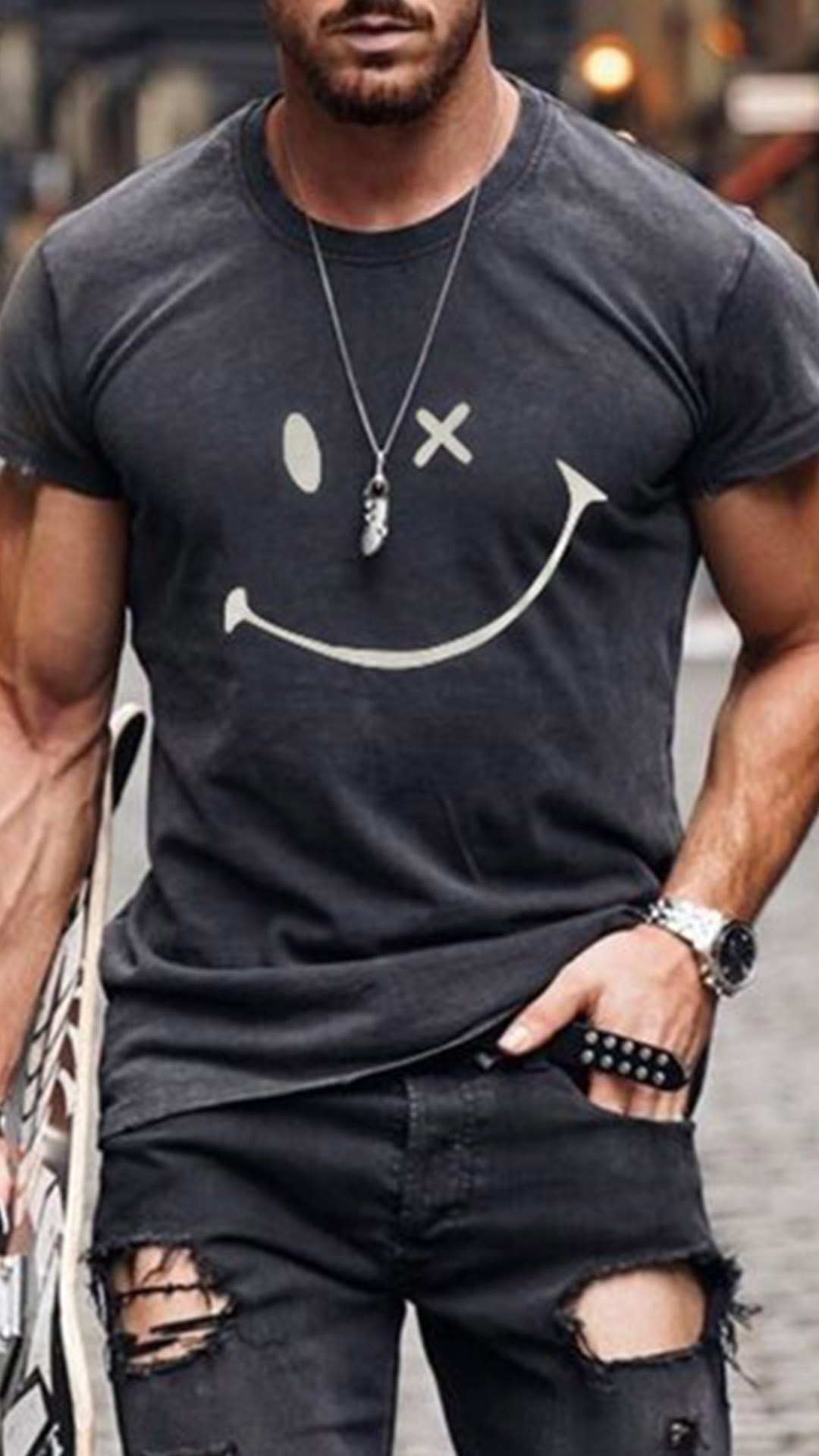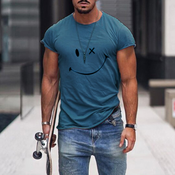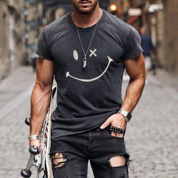Tack vare det mjuka och andningsbara tyget kan denna t-shirt erbjuda dig en sval och bekväm dag. Avslutad med kort ärm, rund hals och ett leende ansiktstryckt mönster, enkelt men lekfullt. För dina vardagliga dagar är den här t-shirten precis det du behöver!