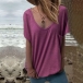 Casual Style Short Sleeve V-neck Solid Color T-shirt