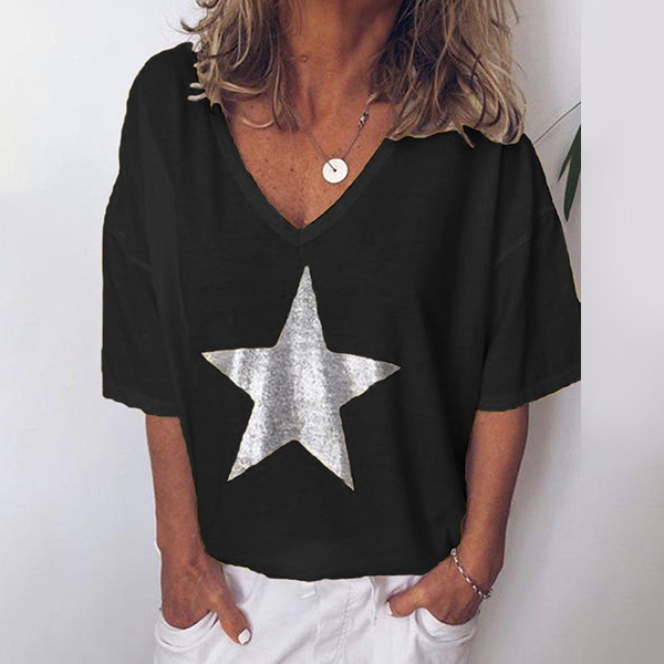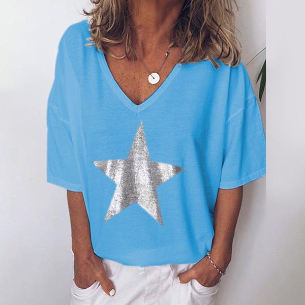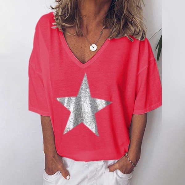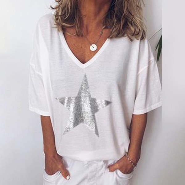 It is finished with short sleeve,v-neck and a loose silhouette design,simple in style,but it can