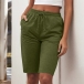Casual Style Enfärgad Knälånga Shorts med elastisk midja