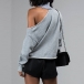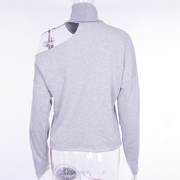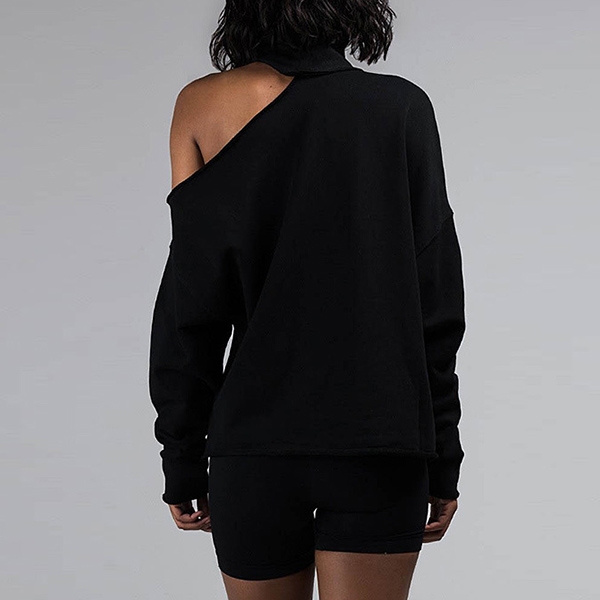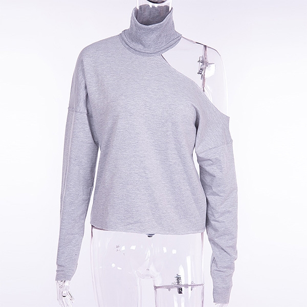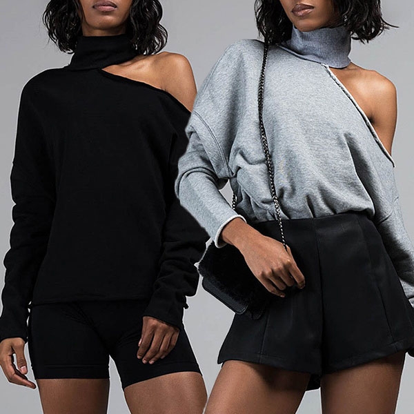 silhouette with a cozy fabric, feature an open shoulder design at the left shoulder for a charming