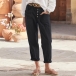 Högmidjade enfärgade byxor med knappdetalj – avslappnad stil