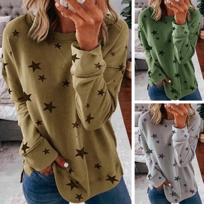 Casual Style Star Printed Long Sleeve Round Neck Sweatshirt
