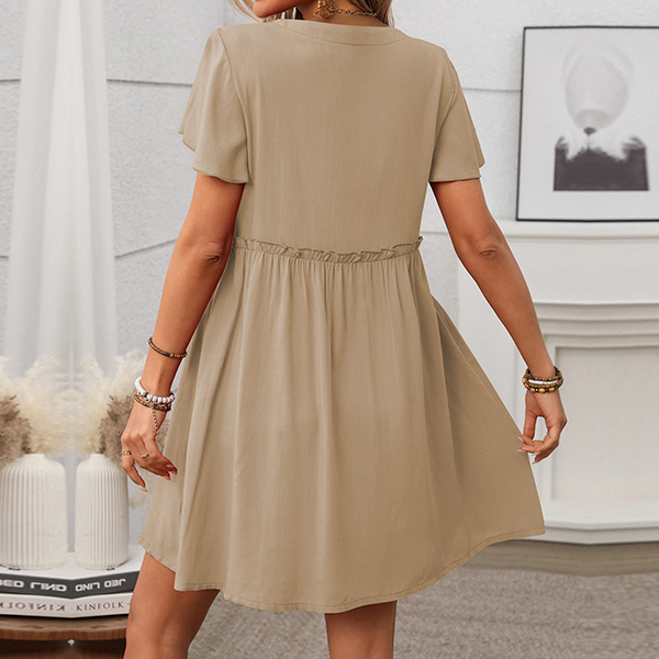 Ledig V-ringad kortärmad miniklänning med knappar framtill