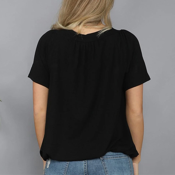 This versatile shirt features a flattering V-neckline and short sleeves, making it a perfect piece for any occasion. Dress it up with a skirt or dress it down with jeans for a casual look.