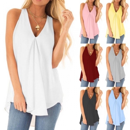 Comes with solid color style,it is finished with v-neck and sleeveless design,simple