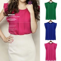 Sexy Solid Color Cold Shoulder Turtleneck Short Sleeve Hollow Out Back Slit T-shirt