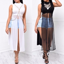 Casual Style Solid Color Round Neck Long Sleeve Side Slit Dress