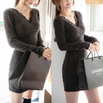 Sexy Deep V-neck Irregular Hem Sleeveless Solid Color Dress