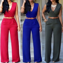 Sexy Deep V-neck Sleeveless Solid Color Rompers