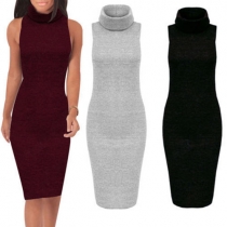 Sexy Hollow Out High Waist Sleeveless Round Neck Sheath Dress