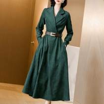 Mode Vertikala Ränder V-ringad Volangärmar Hög Midja Miniklänning