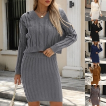 Färgglad V-ringad långärmad Bodycon Ribbstickad Klänning