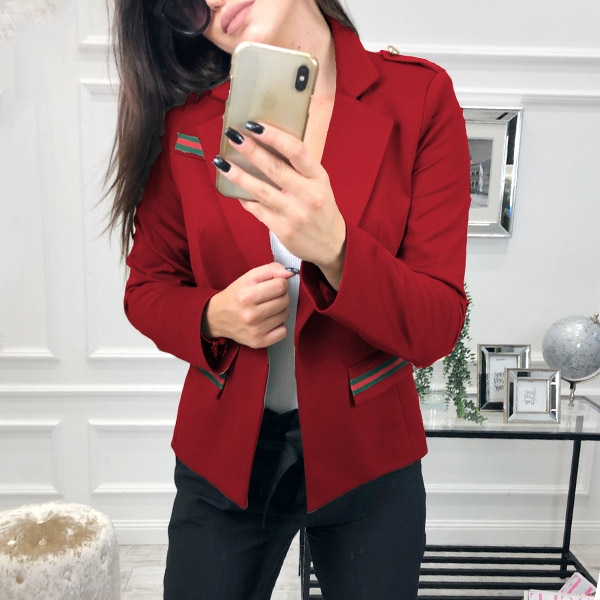 For these modern office ladies,this blazer would be their wise choice. Contrast color design makes it
