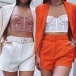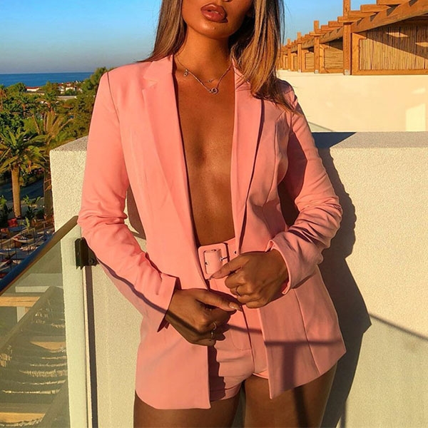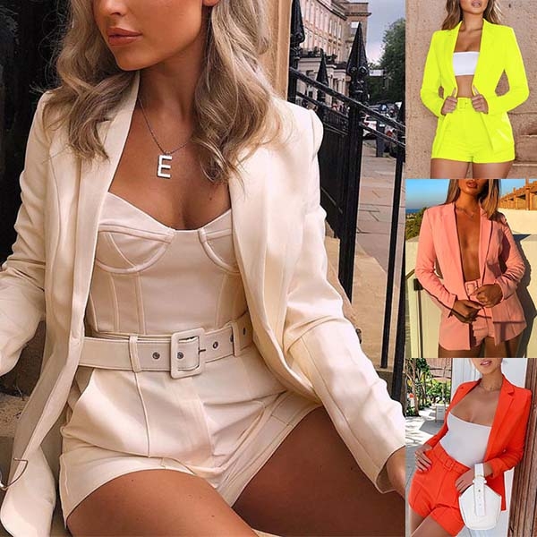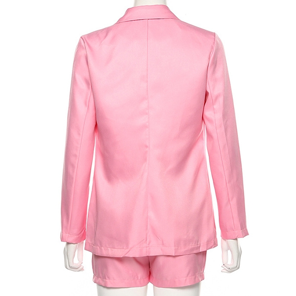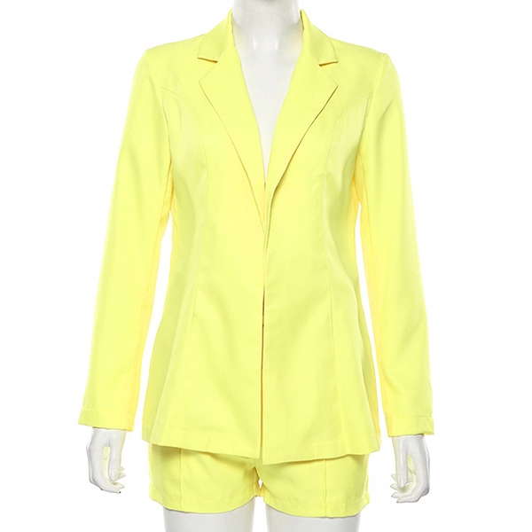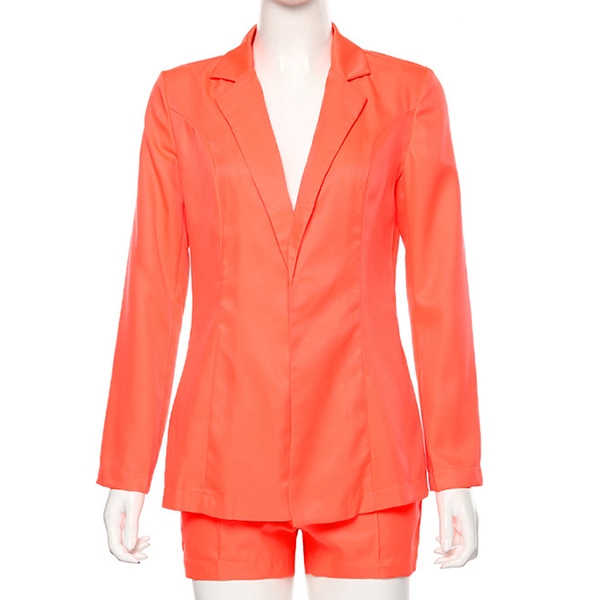 two-piece set. Solid color style,including a long sleeve blazer and a high waist shorts,