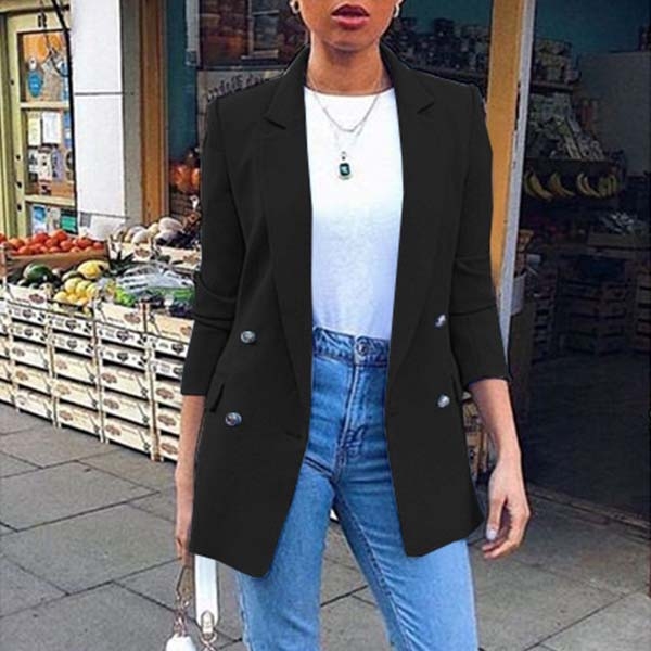 Finished with long sleeve,double-breasted and a clean silhouette,this piece can showcase your