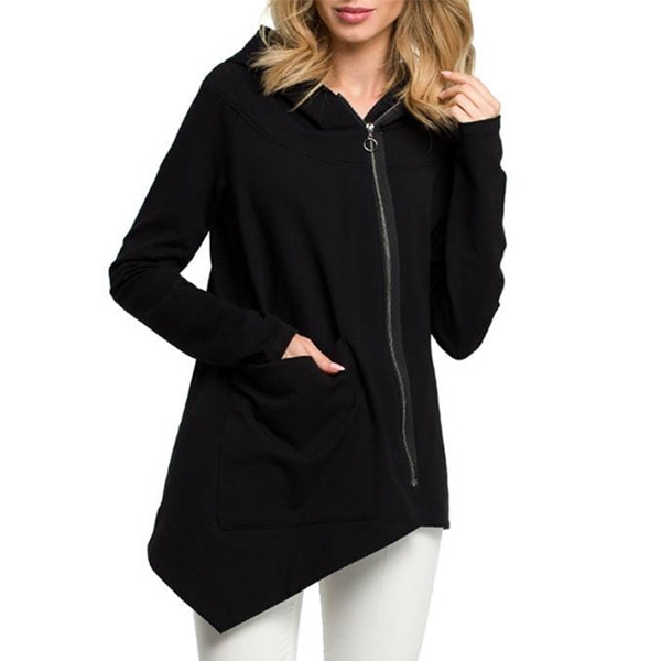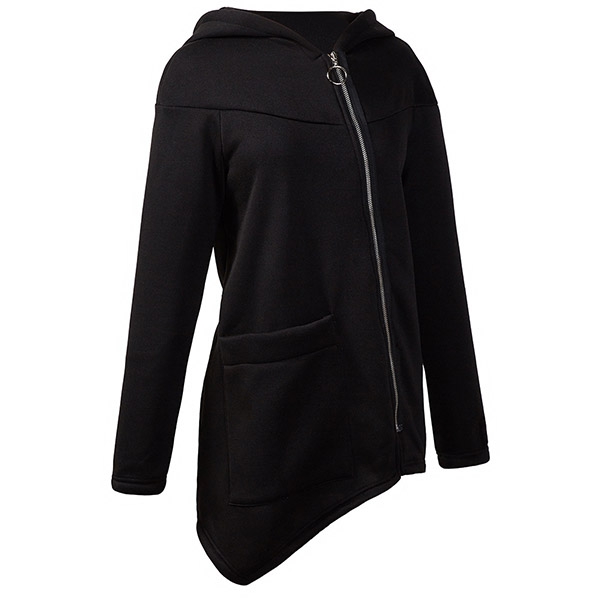 Wow,such a chic and unique sweatshirt! Boasts a solid color,the irregular hem,big pocket