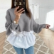 Only need one glance,you would be attracted by this chic and unique top. The contrast color hem design