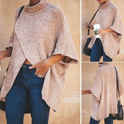 Showcase your chic,unique and stylish street style through this sweater. The half sleeve,mock neck and slit