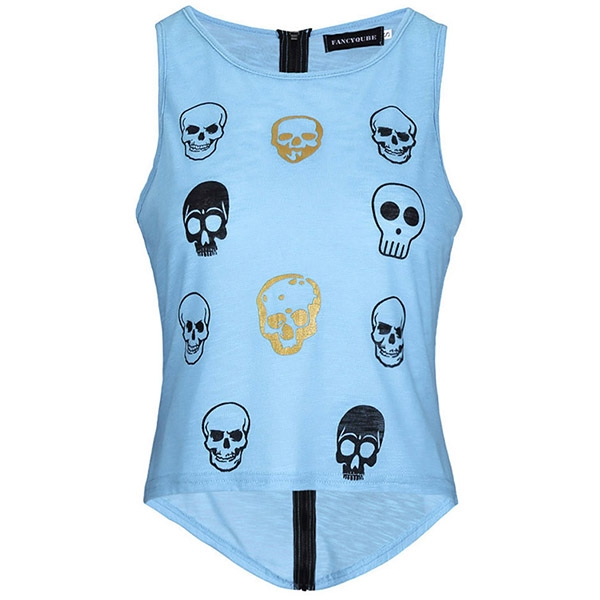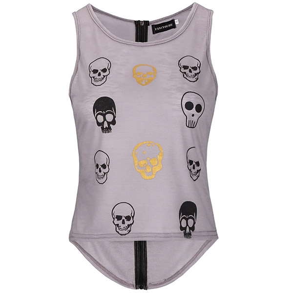 It is designed with skull head printed pattern,the back-zipper and high-low hem design make
