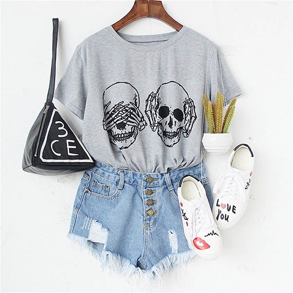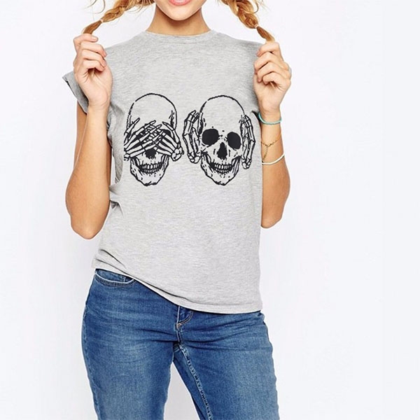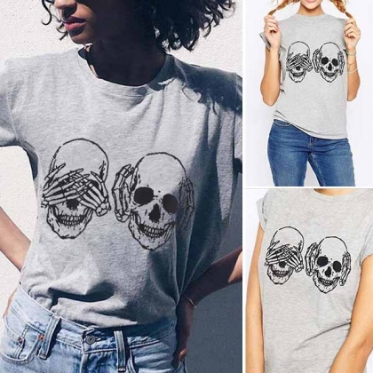 The skull head printed pattern design makes it look more attractive. Finished with short sleeve,round neck and soft fabric,