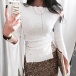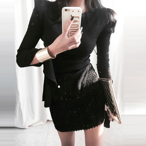 with a solid color,the slit design at the sleeve and hem part makes this piece look more attractive.