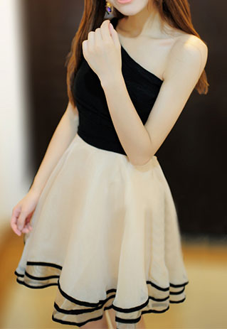 Rock the night away in the gorgeous dress.It features a one-shoulder black top with draped detail and a multi-layered pleated skirt with black stripes at the hem.Compete your night look with a pair of heel.