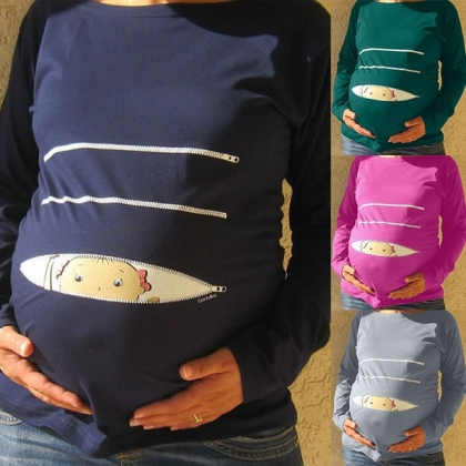 Finished with long sleeve and round neck design,this t-shirt is perfect fit for these pregnant women.