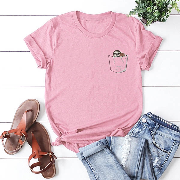 round neck,short sleeve and chest patch pocket design,simple yet stylish. The cartoon printed design