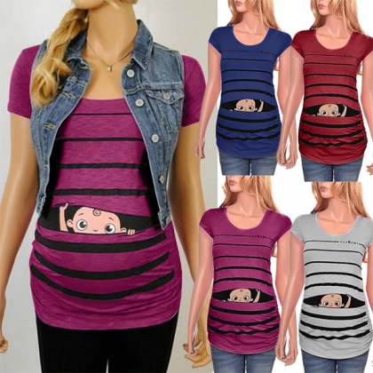 Cute Cartoon Printed Round Neck Tank Top for Pregnant Women