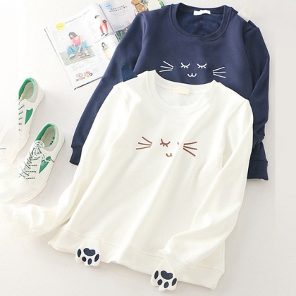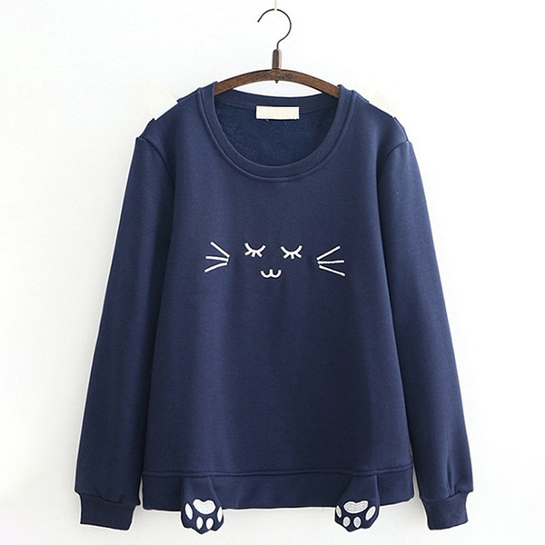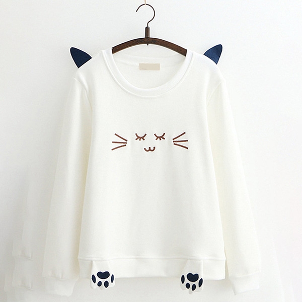 Like cute style piece? Then make your eyes focused on this sweatshirt. The cat embroidered design