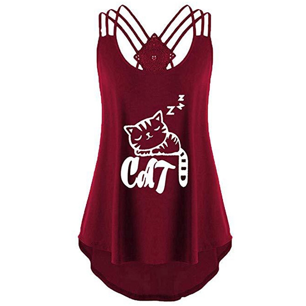 This sling top is designed with cat printed pattern,which can lend you a dash of cute and playful vibes,
