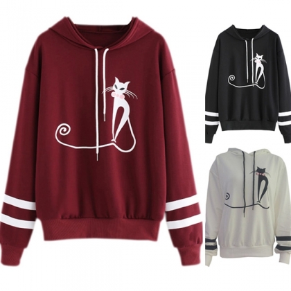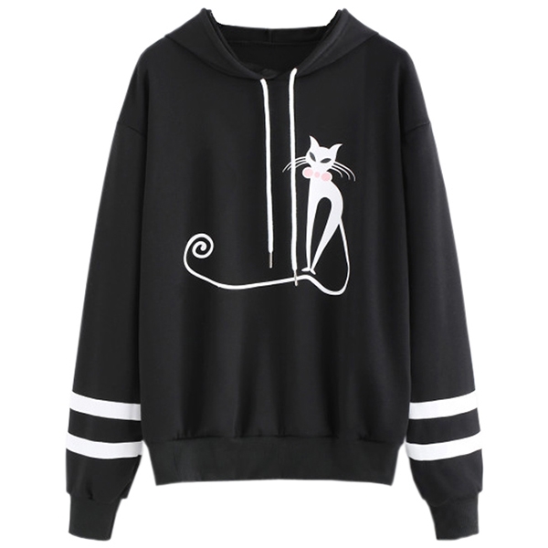 Easy to achieve for a cute,playful yet stylish style with this hoodie! The cat printed and striped element