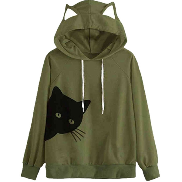 you this hoodie! The cat printed pattern design can lend you a dash of cute flavor. Finished with long sleeve,
