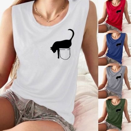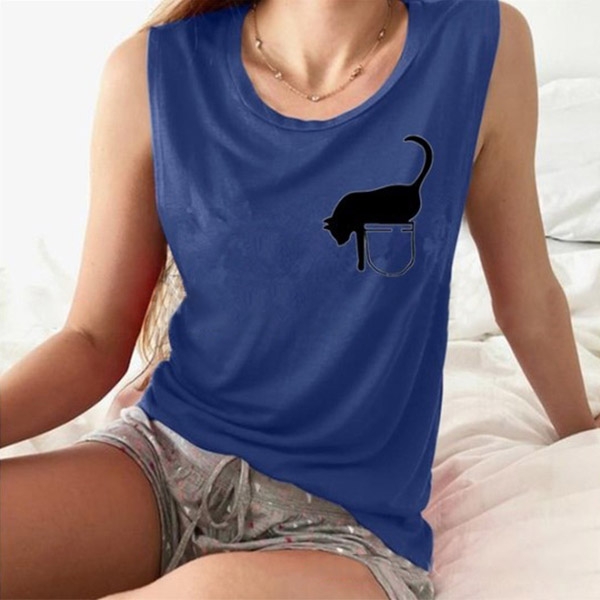 As a summer essential,this tank top is worth to arouse your attention. The cat printed pattern design lends