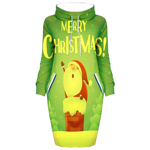 Greet the arrival of the Christmas Day with this delightful dress! The Santa Claus printed pattern design makes