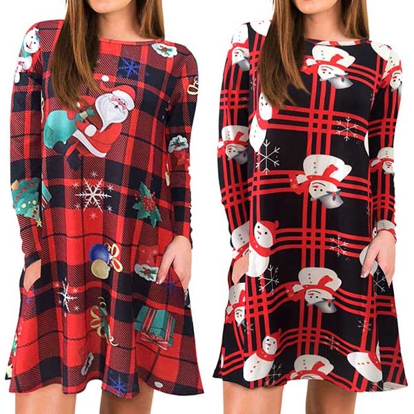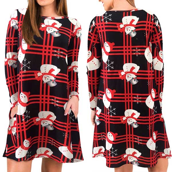 Greet the arrival of the Christmas Day with this delightful dress. The snowman/Christmas Tree printed