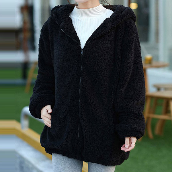 Hej tjejer, ni kan lita på att den här plyschrocken ger er en varm dag. Enfärgad stil, med lång ärm och