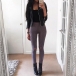 with zipper,chic and unique. Solid color style,with high waist and slim fit design,this pencil pants is