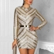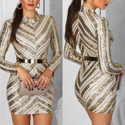 gatherings. Finished with long sleeve,mock neck and a fit silhouette,this dress can demonstrate your slender