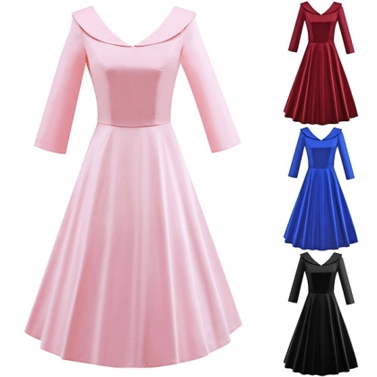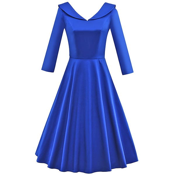finished with 3/4 sleeve,lapel and high waist design,this dress can give you an easy transition form daytime