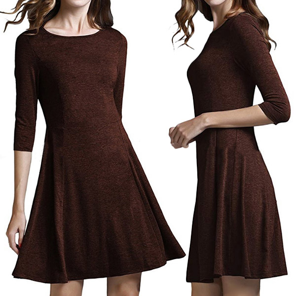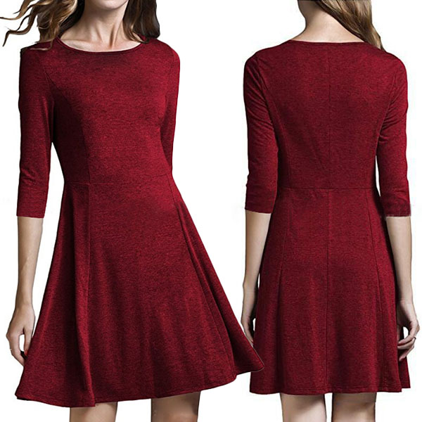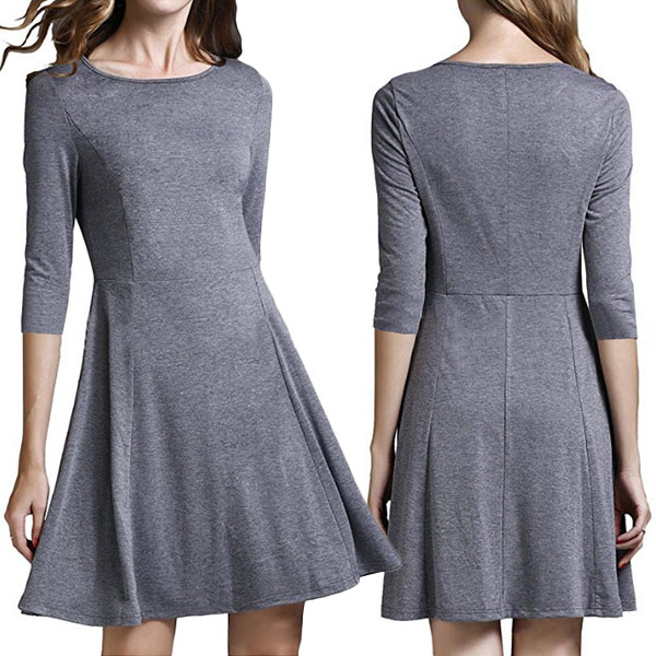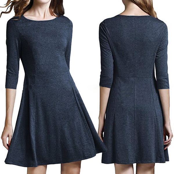 finished with 3/4 sleeve,round neck and a clean silhouette,this dress is both fit for your workdays and