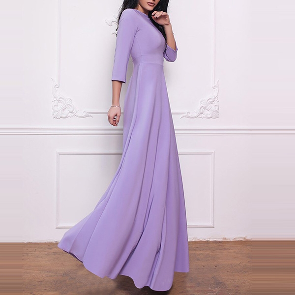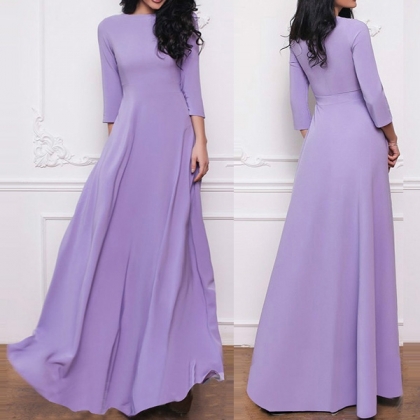 This dress comes with an elegant and noble purple tone,finished with 3/4 sleeve and round neck design,